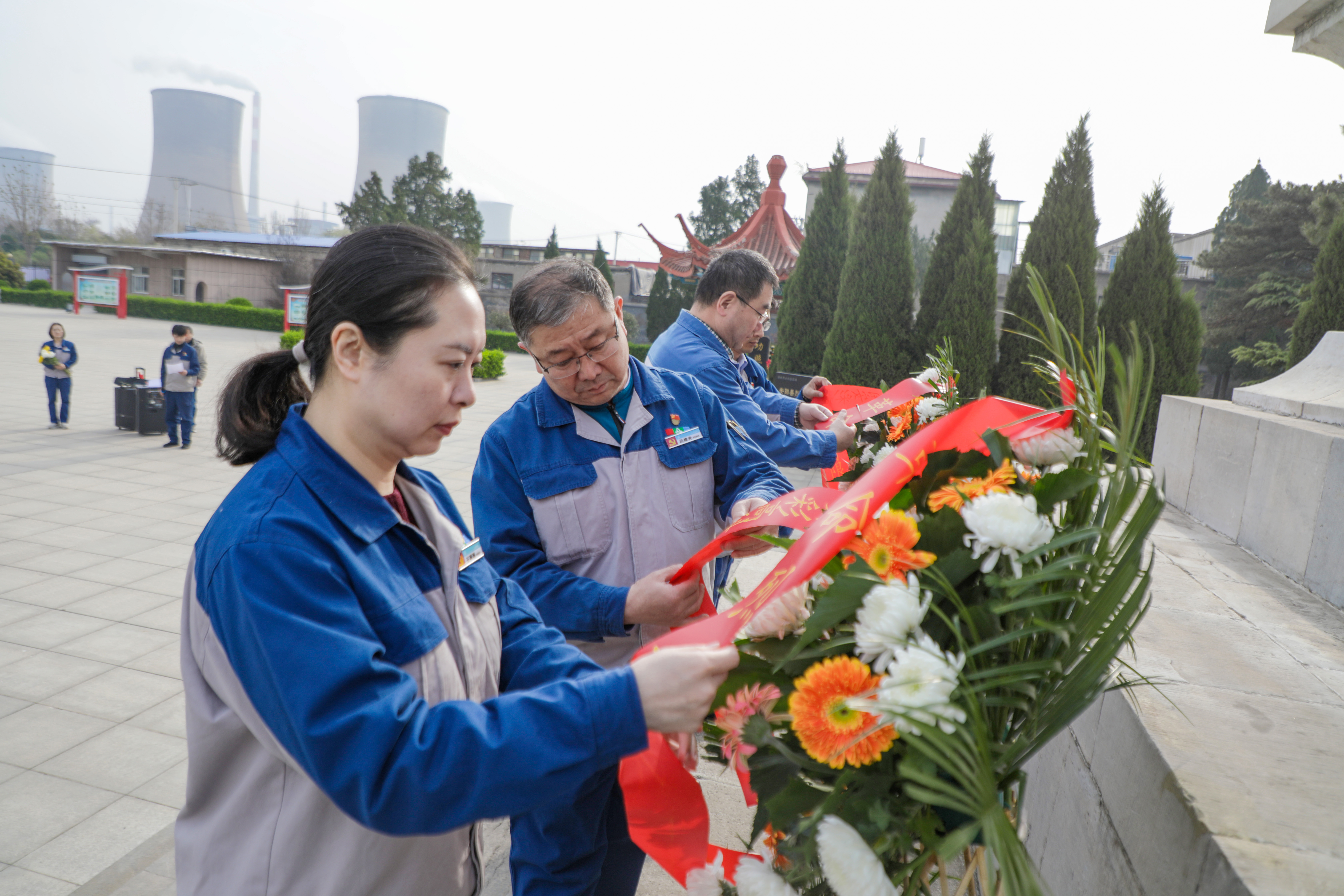 禮畢,全體人員依次前往紀念碑敬獻鮮花,向革命英烈致以崇高的敬意。